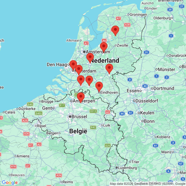 • Locaties: Antwerpen, Dordrecht, Eindhoven, Harderwijk, Nijmegen en Rotterdam