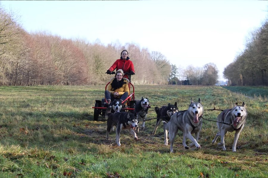 Je gaat om de beurt mee op de kar. De vierwieler heeft een zitplek voorop en een sta-plek voor de bestuurder achterop. Wanneer de husky’s in positie staan en de remmen losgaan, schieten jullie vooruit over de bospaden. De snelheid, het teamwork van de honden en de frisse wind zorgen voor een echte adrenalinekick. Na jouw rit kun je even bijkomen en kijken hoe andere deelnemers de tocht beleven — minstens zo leuk om te zien hoe de honden samenwerken als één powerteam.