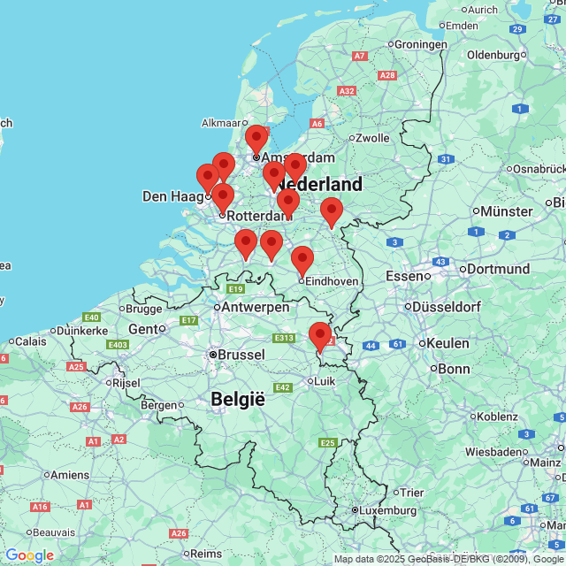 Deze workshop wordt aangeboden in Amersfoort, Amsterdam, Den Bosch, Breda, Den Haag, Eindhoven, Geldermalsen, Leiden, Maastricht, Nijmegen, Rotterdam, Tilburg en Utrecht.