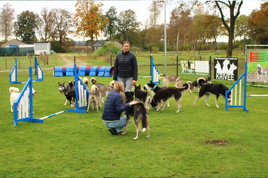 - Spelen en knuffelen met de husky's
